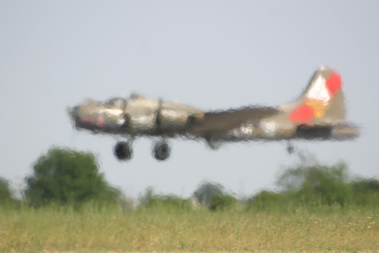 B17, Pink Lady au travers du flux d’un mirage 2000 qui passe sur la piste juste devant.