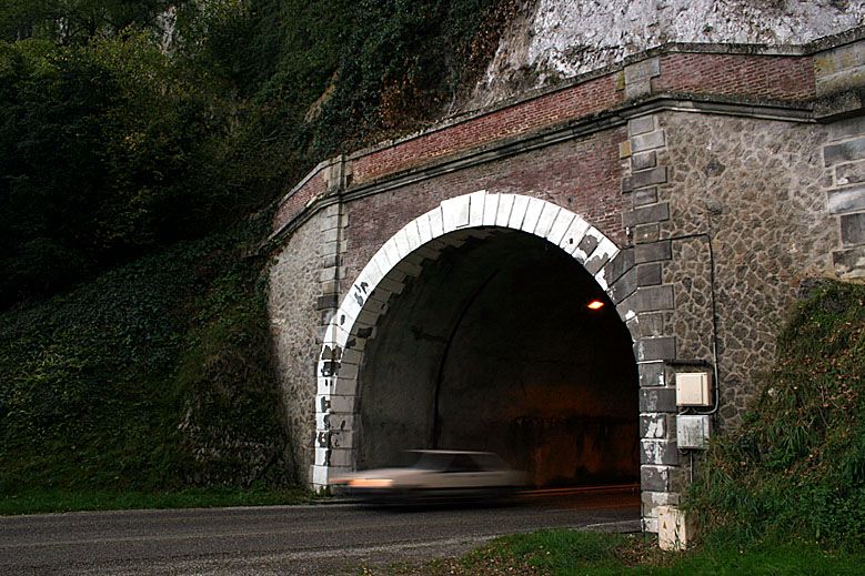 Ex tunnel de chemin de fer recyclé maintenant en tunnel routier, celui-i passe sous le hameau de Brousses, à gauche direction Saint-Antonin-Noble-Val à droite direction Montauban.
