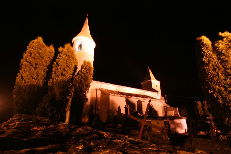 Au premier plan le cimetierre, au second l'église au deux clochers de Lavaurette (Tarn-Et-Garonne)