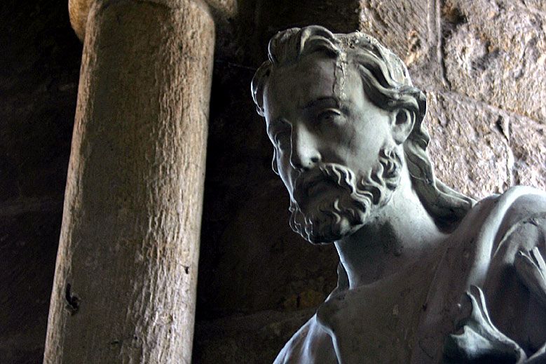 Visage sculpté du Christ dans l'église romane du 11éme siècle de Varen dans le Tarn-Et-Garonne.